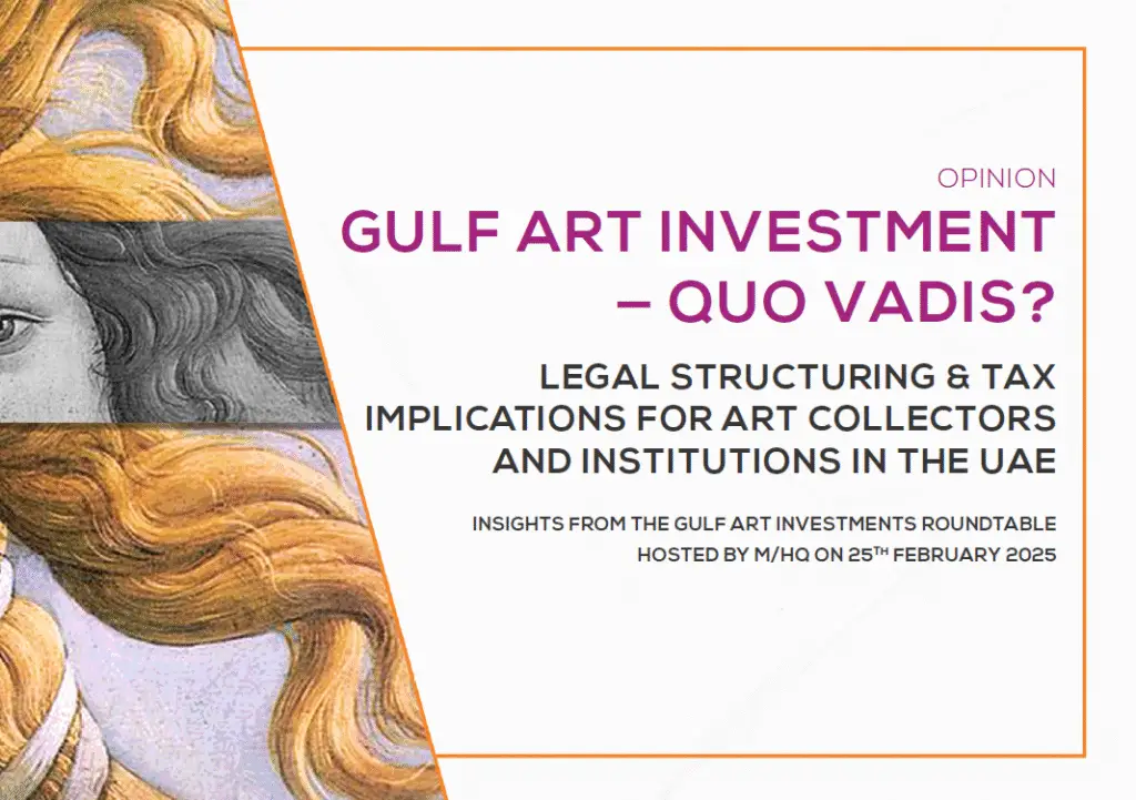 We are delighted to share our latest whitepaper, “Gulf Art Investment — Quo Vadis? Legal Structuring & Tax Implications for Art Collectors and Institutions in the UAE: Insights from Roundtable”, exploring the legal, tax, and structural frameworks shaping the future of the art market in the UAE and beyond.