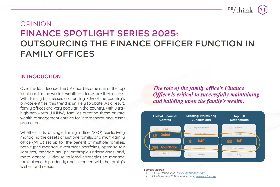 The role of the family office’s Finance Officer is critical to successfully maintaining and building upon the family’s wealth, supported by our broader accounting & finance services for end-to-end financial management. Whilst many emerging and growing family offices – including those moving to the UAE for the first time – outsource the Finance Officer function, other larger fully-fledged family offices may opt for a full-time, in-house resource.